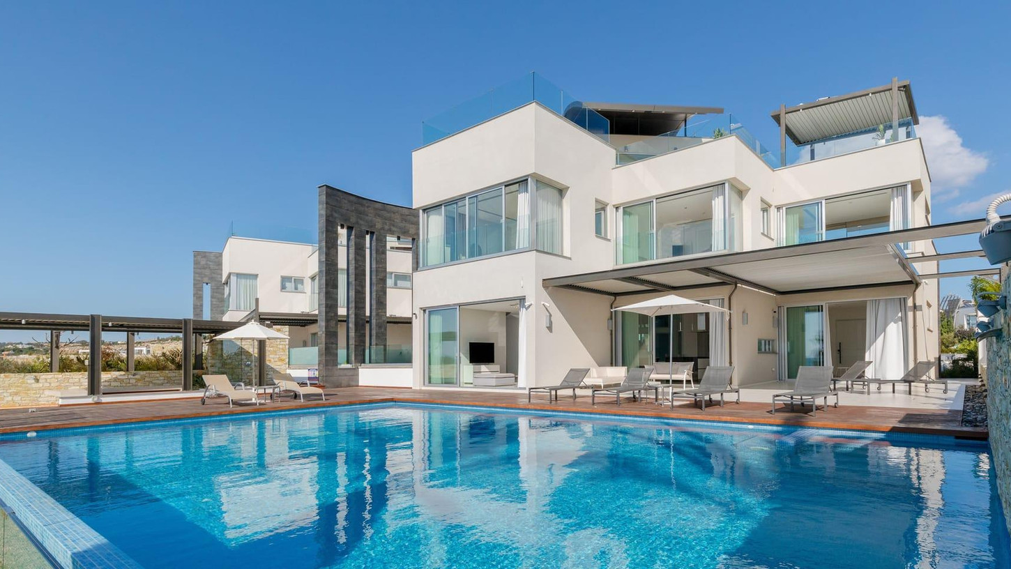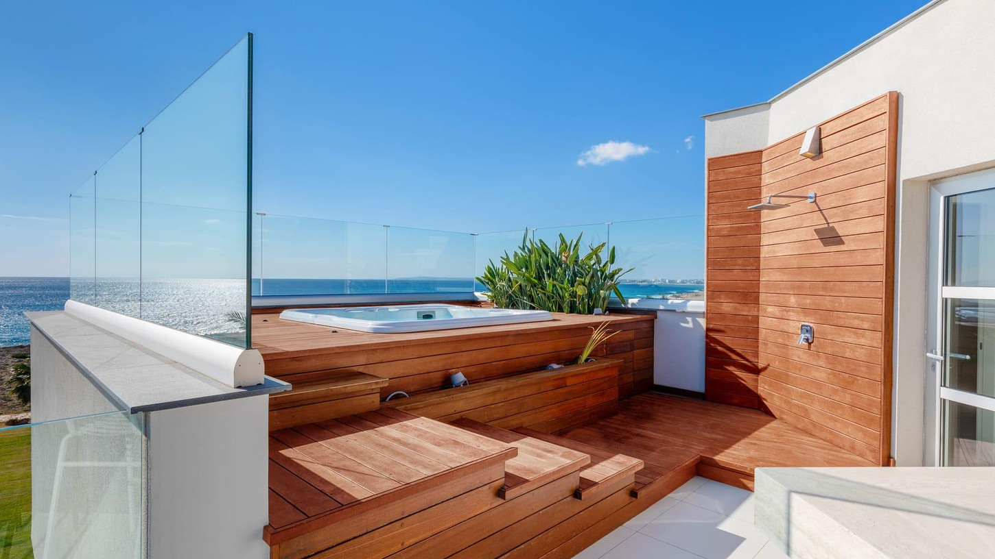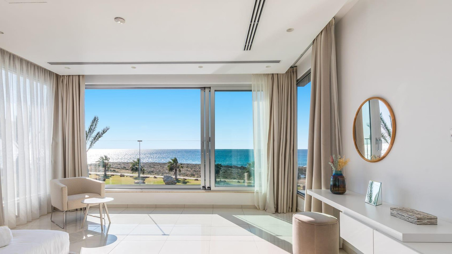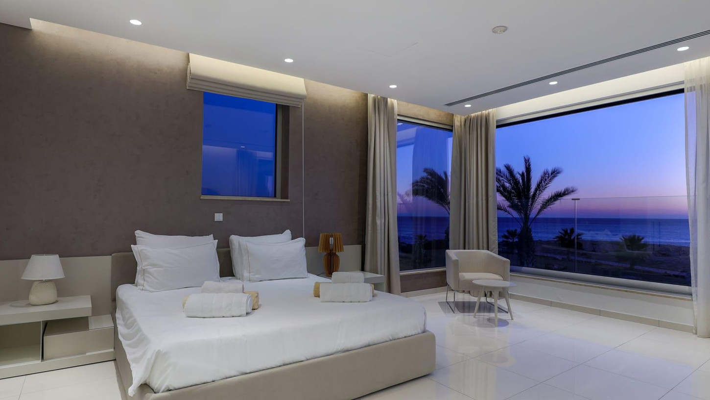 This exquisite four-level beachfront villa is a serene retreat nestled along an untouched coastal stretch on Cyprus southeastern coast, between Ayia Napa and the protected nature park of Cape Greco. Step inside and be welcomed by bright, sunlit interiors, seamlessly connected to the stunning outdoor space through sliding doors. The pool area is a haven of relaxation, featuring a spacious sunbathing deck, a stylishly furnished terrace, and a dedicated BBQ corner. For ultimate privacy, the villa’s five ensuite double bedrooms are spread across different levels. Crowning this spectacular villa is the rooftop terrace, an elevated sanctuary designed for outdoor relaxation and entertainment. Whether basking in the sun or enjoying the stars, this space features a jacuzzi, shower, BBQ, lounge area, and a fully equipped bar, creating the ultimate luxury experience.